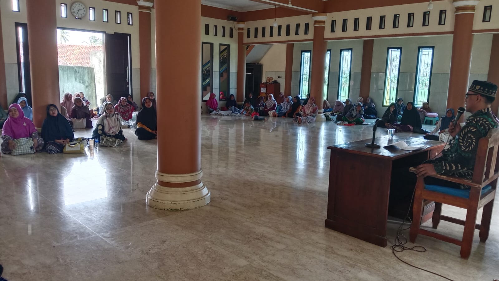 Sesi materi dimulai dengan bimbingan Al-Qur’an oleh Ustazah Destiana mengenai kewajiban beribadah. Kemudian dilanjutkan oleh Ustaz Karsono yang memaparkan materi thaharah atau kesucian, mencakup pembahasan mendalam mengenai haid, nifas, hingga istihadah.