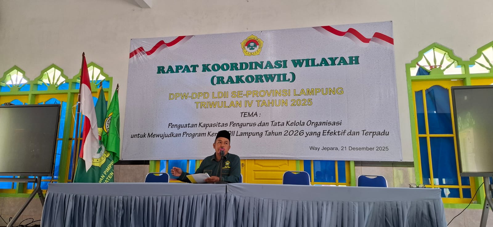 Rakorwil Triwulan IV tersebut dilaksanakan di Masjid Al Manar, Pondok Pesantren Al Haq, Kecamatan Way Jepara, Kabupaten Lampung Timur. Kegiatan ini diikuti oleh jajaran pengurus DPW dan DPD LDII kabupaten/kota se-Provinsi Lampung sebagai bagian dari konsolidasi organisasi menjelang pelaksanaan program kerja tahun 2026.