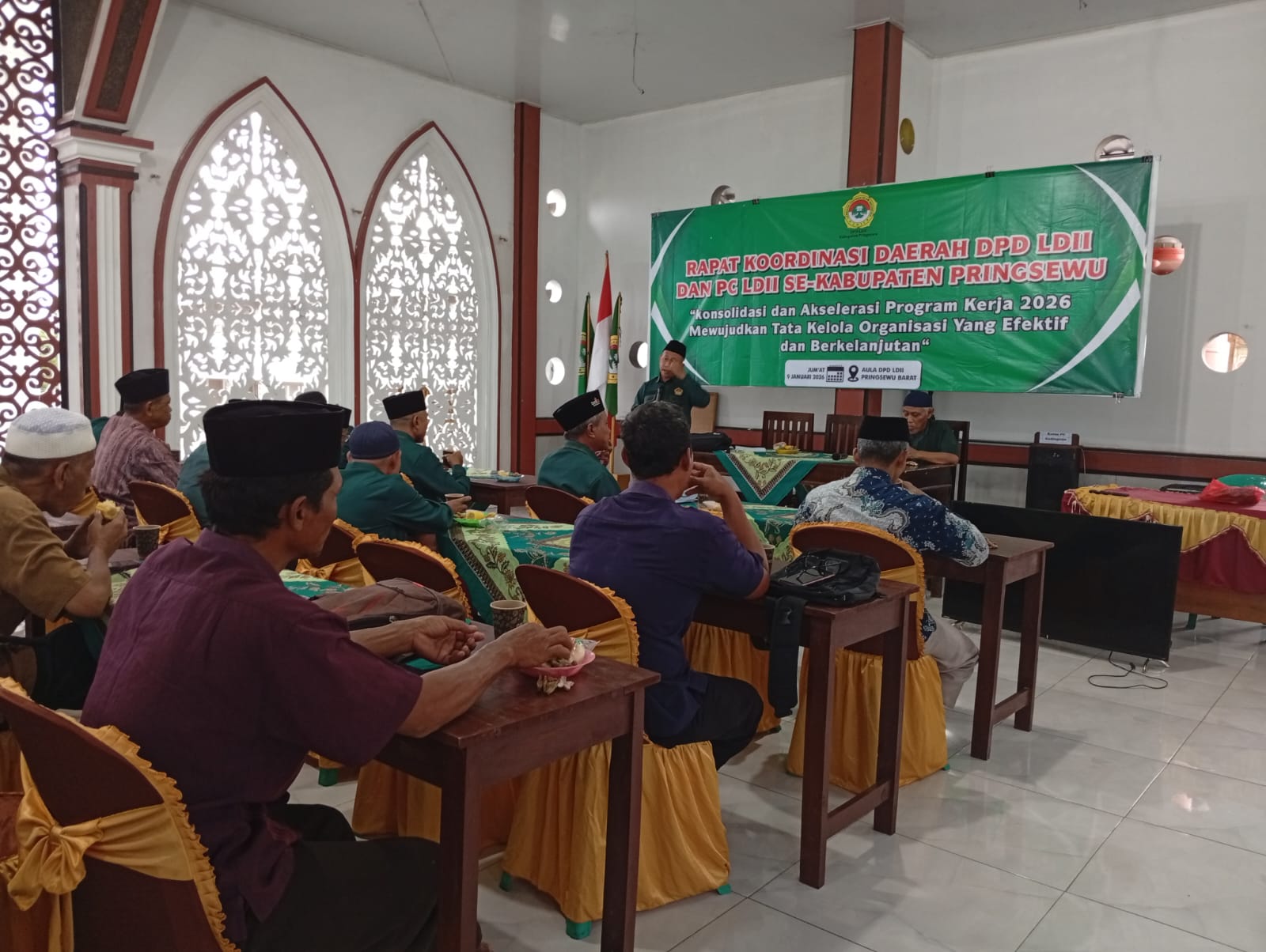 Pringsewu (11/1). Dewan Pimpinan Daerah (DPD) Lembaga Dakwah Islam Indonesia (LDII) Kabupaten Pringsewu menggelar Rapat Koordinasi Daerah (Rakorda) bersama Pimpinan Cabang (PC) LDII kecamatan se-Kabupaten Pringsewu pada Jumat (9/1). Agenda ini difokuskan pada penguatan konsolidasi internal serta percepatan program kerja untuk tahun 2026.
