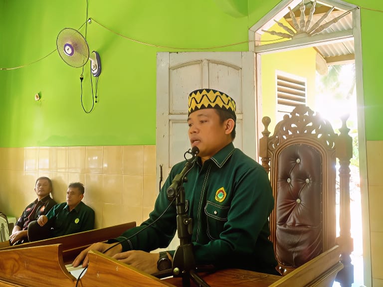 Ketua DPD LDII Kabupaten Pesawaran, Irwan, saat memberikan pidatonya dalam Rapat Koordinasi Daerah LDII Pesawaran di Masjid At Taqwa, Padang Cermin, pada Minggu (27/7).