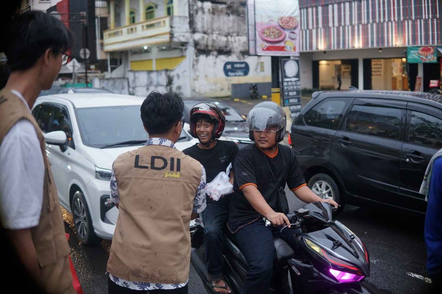 Aksi nyata generasi muda LDII dalam pembagian takjil kepada pengendara di wilayah Lampung di bulan Ramadan 1447 H.
