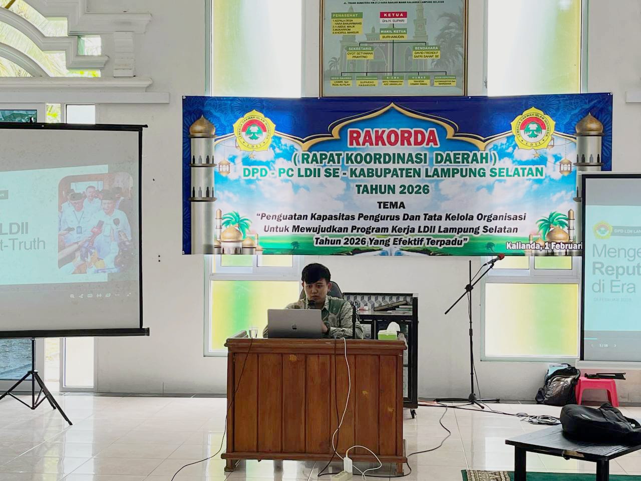 Lampung Selatan (2/2). Bidang Komunikasi, Informasi, dan Media (KIM) DPP LDII memberikan pembekalan penulisan berita dan etika media sosial dalam Rapat Koordinasi Daerah (Rakorda) LDII Lampung Selatan pada Minggu (1/2) di Masjid Baitul Haq, Kalianda. Kegiatan ini bertujuan meningkatkan kemampuan pengurus dalam mengelola informasi dan memanfaatkan media sosial secara efektif.