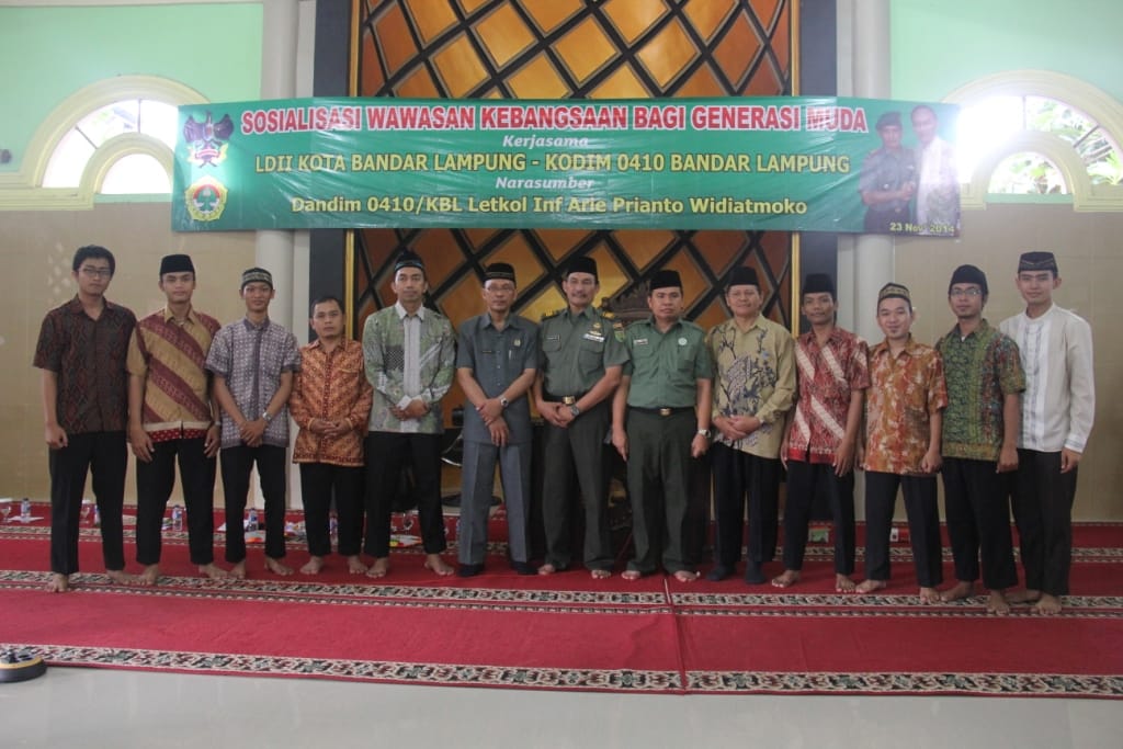 Bandar Lampung – LDII Kota Bandar Lampung menghelat Sosialisasi Wawasan Kebangsaan bagi Generasi Muda yang bekerjasama dengan KODIM 0410 Kota Bandar Lampung. Acara ini diikuti oleh 815 Remaja yang dipusatkan di Masjid Hisbullah Kel. Labuhan Dalam Bandar Lampung, Minggu (23/11).
