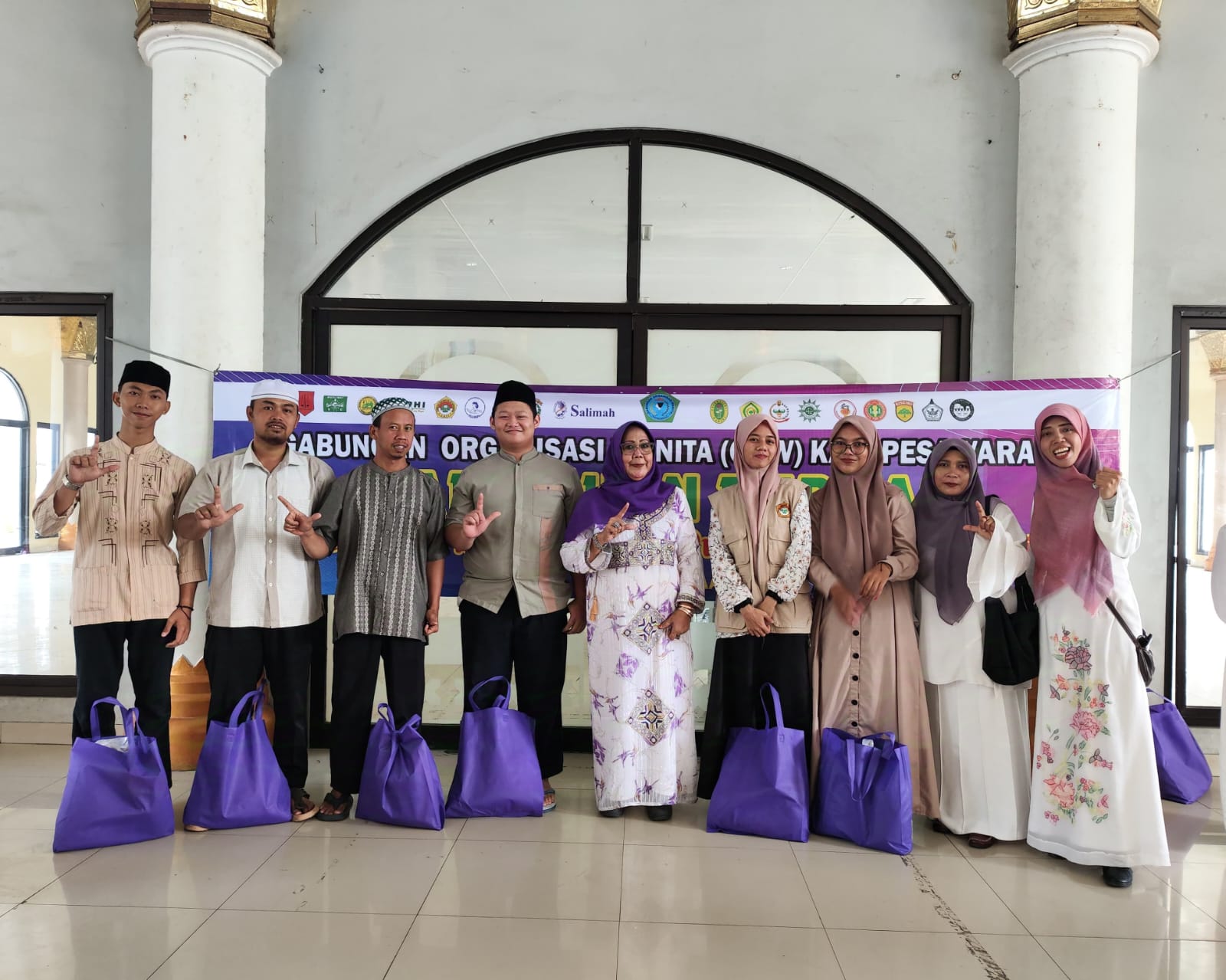 Pesawaran (21/3). Dalam rangka memperkuat hubungan organisasi dan memupuk rasa kepedulian terhadap sesama, Wanita LDII dan 30 Organiasasi Wanita lainnya yang tergabung dalam Gabungan Organisasi Wanita (GOW) Kabupaten Pesawaran memberikan santunan bagi guru-guru ngaji sebanyak 171 paket sembako. Kegiatan tersebut digelar di halaman Masjid Islamic Center, Gedong Tataan, Pesawaran, Lampung, pada Kamis (20/3).