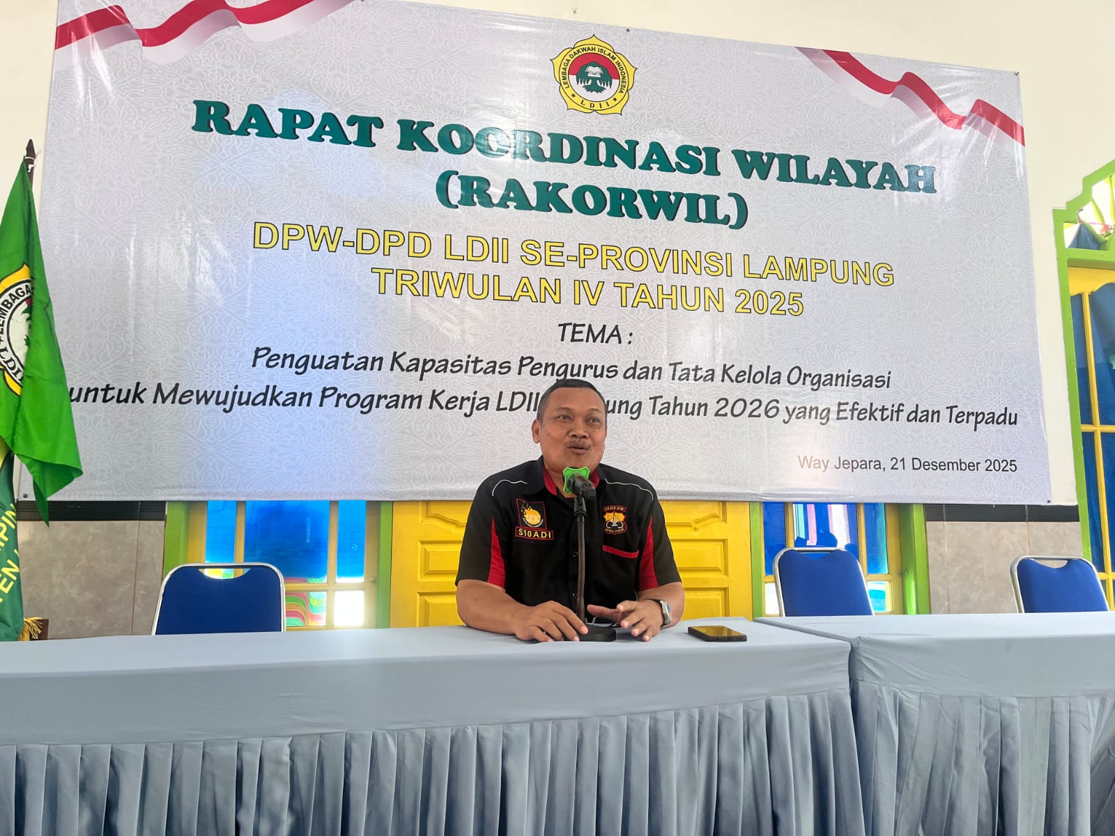 Way Jepara (22/12). Keamanan dan ketertiban masyarakat (kamtibmas) merupakan tanggung jawab bersama seluruh elemen bangsa. LDII sebagai bagian dari masyarakat madani memandang penting adanya sinergi dan kolaborasi lintas organisasi dalam menjaga stabilitas sosial. Salah satu bentuk nyata komitmen tersebut diwujudkan melalui kerja sama berkelanjutan dengan Senkom Mitra Polri. Hal itu kembali ditegaskan dalam gelaran Rapat Koordinasi Wilayah (Rakorwil) DPW–DPD LDII Provinsi Lampung Triwulan IV Tahun 2025 yang berlangsung pada Minggu (21/12) di Pondok Pesantren Al Haq, Way Jepara, Lampung Timur.