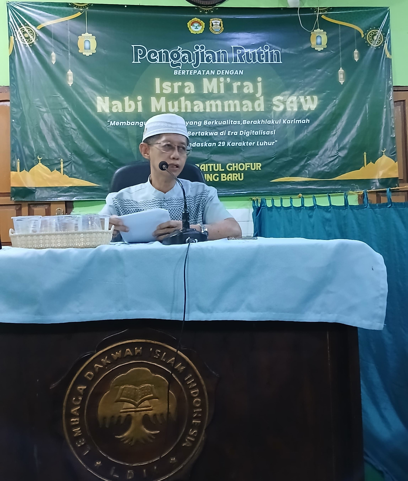 Bandar Lampung (28/01). PAC LDII Tanjung baru berkolaborasi dengan PAC LDII Jagabaya menggelar Pengajian Rutin Bersama yang bertepatan dengan Isra Mi’raj Nabi Muhammad SAW 1446 H di Masjid Baitul Ghofur, Tanjung Baru pada Senin (27/01). Pengajian yang dihadiri tak kurang dari 100 jamaah itu bertemakan “membangun generasi yang berkualitas, berakhlakul karimah, beriman dan bertaqwa diera digitalisasi dengan berlandaskan 29 karakter luhur”.